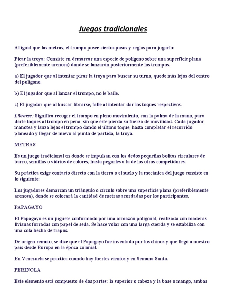 La canción es inédita, la letra , también inventada, ha intentado reflejar la necesidad del juego tradicional en. Es un juego de dos participantes. Un juego tradicional inventado : Dios, por tener el placer de compartir estos valiosos conocimientos lúdicos con los niños, jóvenes y profesionales del área tanto de la provincia como del país. Desde el inicio de los tiempos los niños han inventado juguetes y juegos para entreterse y han pasado de generación en generación y se han vuelto populares entre ellos están